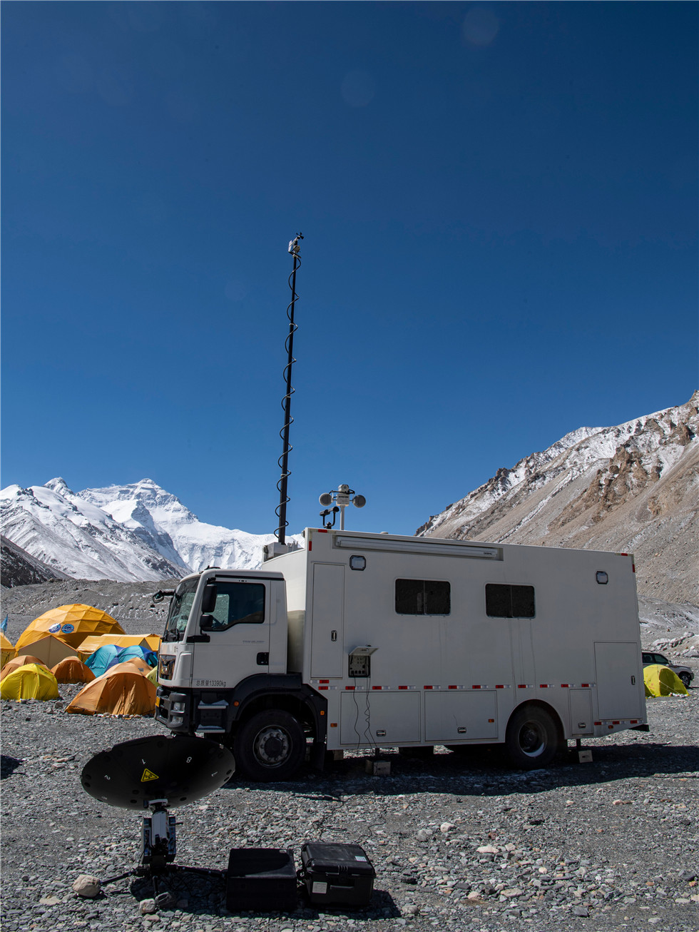 这是珠峰登山大本营的气象应急保障车(5月3日摄)。