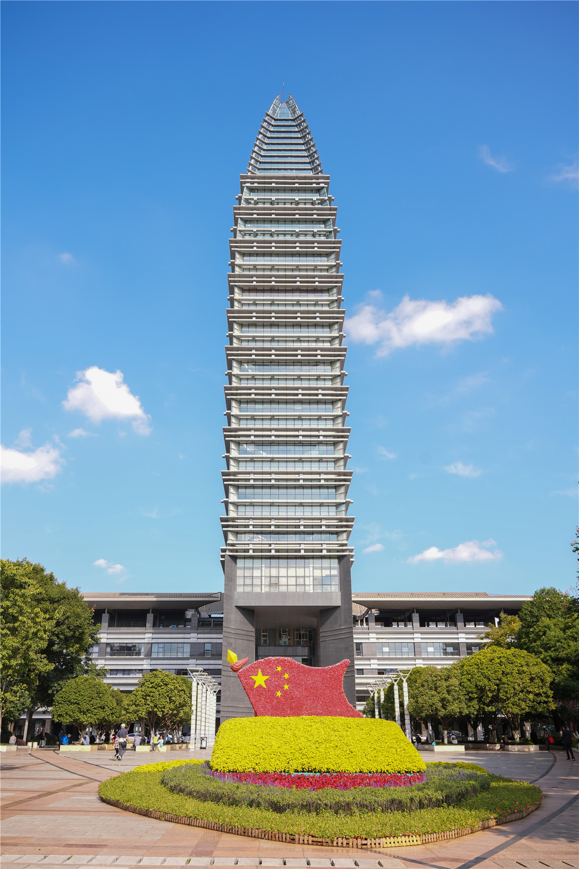 为庆祝中华人民共和国成立73周年,昆明市在城区的主干道、商圈、店铺、社区等悬挂国旗。其中,在车水马龙的人民中路,每隔十几米,道路两旁的路灯灯柱上就悬挂着两面鲜艳的五星红旗,在碧蓝天空的映衬下格外醒目。条条大路五星红旗迎风招展,充满着节日的喜庆气氛。