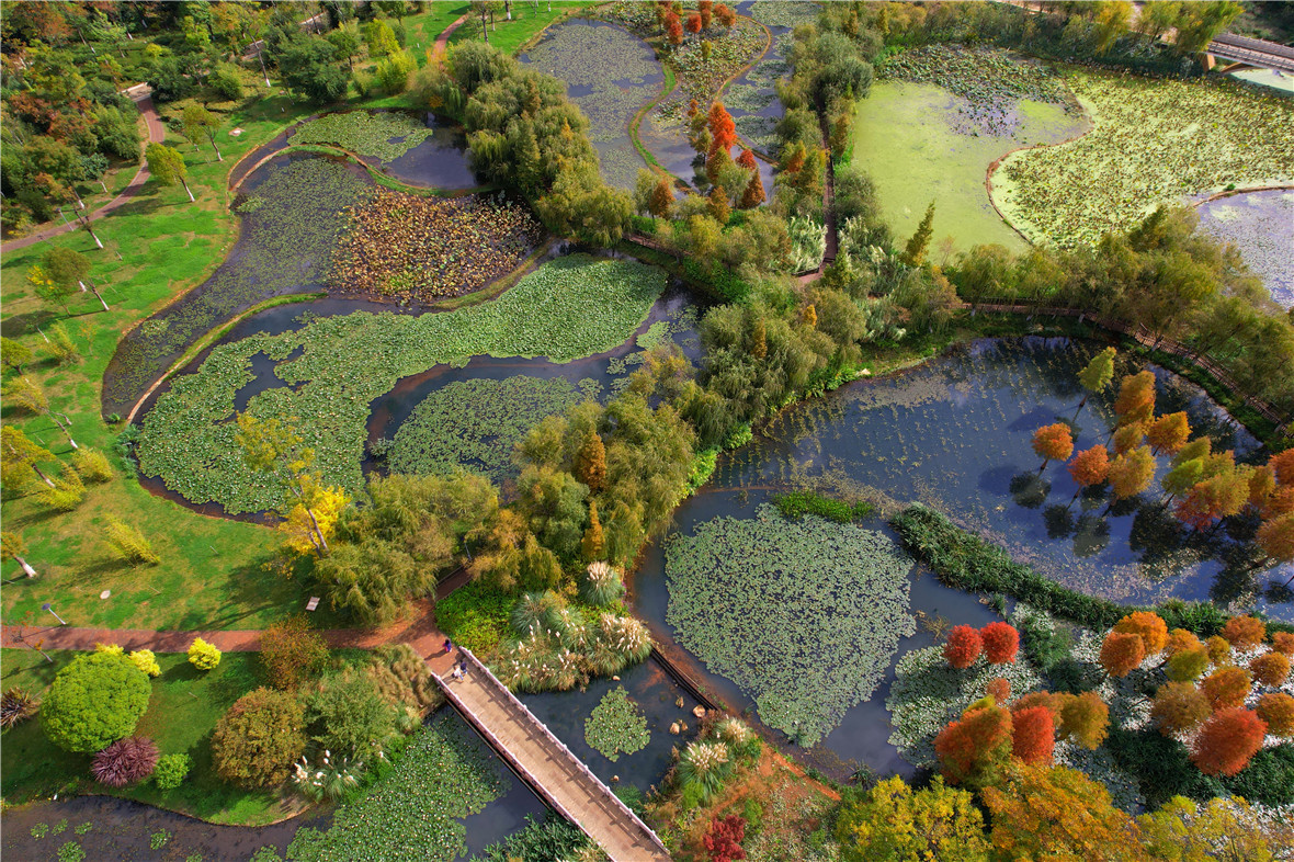 位于昆明市马金铺的渔浦寒泉湿地公园已成为昆明高新区东区绿美景观。渔浦寒泉公园依托丰富地形及多样性植物,以“碧水环绕·醉意花语”为规划主题,融情于水、寄浪漫于花香,通过对水景及芳香植物的精心营造,突出高原生态湿地特色。