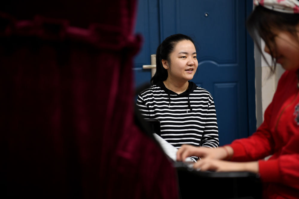 ↑ 2020年6月18日,王香君在合肥特殊教育中心教视障儿童练习钢琴。