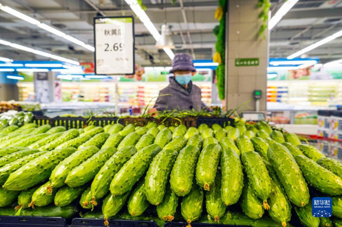 消费者在河北唐山遵化市一家超市选购蔬菜(4月11日摄)。新华社发(刘满仓摄)