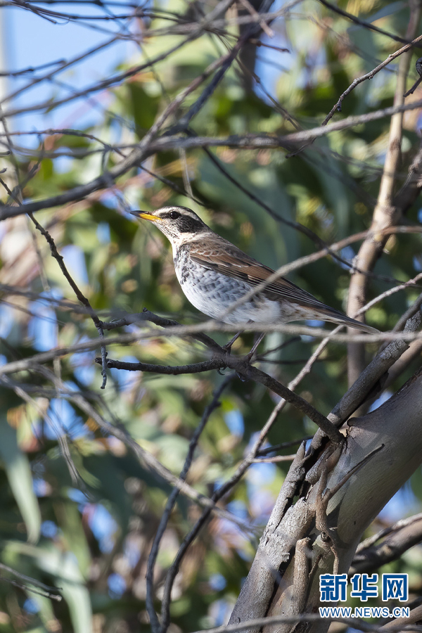 滇池湿地少见的越冬鸟类斑鸫(摄于2月13日)。新华网发(韦铭 摄)