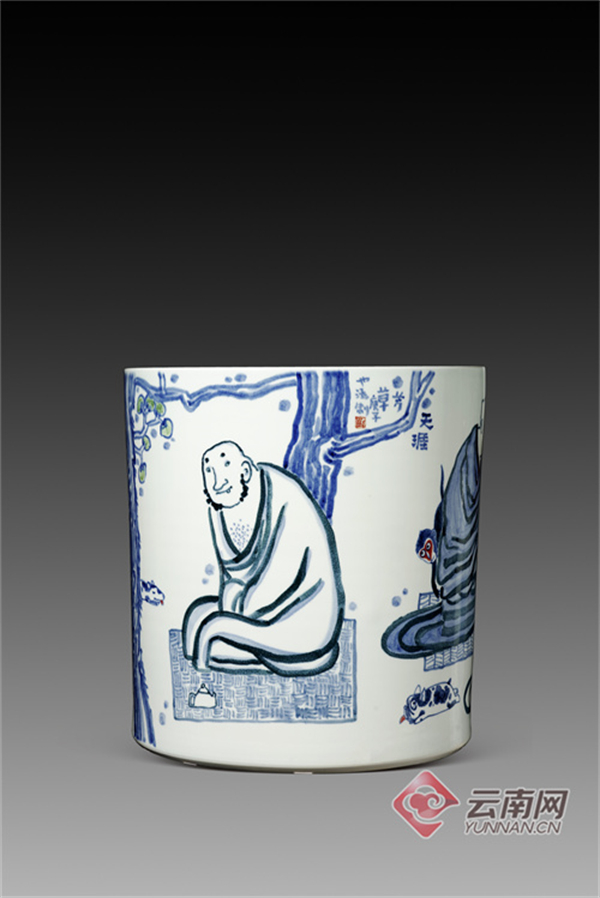 “云南和景德镇、德化并称中国古青花瓷器的三大产地,清朝康熙年间的青花瓷器大量使用云南盛产的珠明料。”