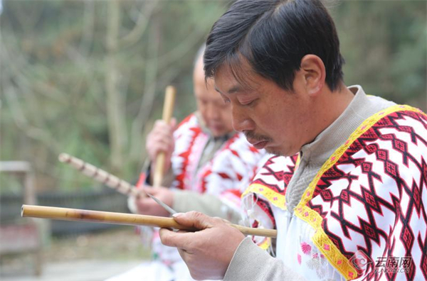 在昭通市大关县,芦笙是苗族同胞非常喜爱的传统乐器。这种古老的多簧气鸣乐器,制作工序繁杂、工艺考究,芦笙匠人需经过选料、烤料、打制簧片、制作竹木部件、装簧片和定音等几十道工序,才能制作出一件造型优美、音质优良的苗族芦笙。