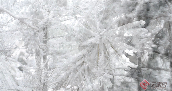 漫山雾气升腾,凝成闪亮的银丝,弥散在枝叶繁茂的树林间。一遇到寒冷的空气,银丝便凝结成了朵朵霜花驻留在枝叶上。漫山遍野的玉树琼枝让曾经满目葱茏的万里林海多了一份“北国韵味”。