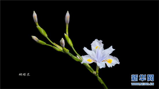 延时摄影镜头下的蝴蝶花绽放。