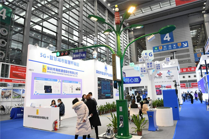 这是2021年12月27日拍摄的第二十三届高交会上展出的多功能智慧杆。(新华社记者梁旭摄)