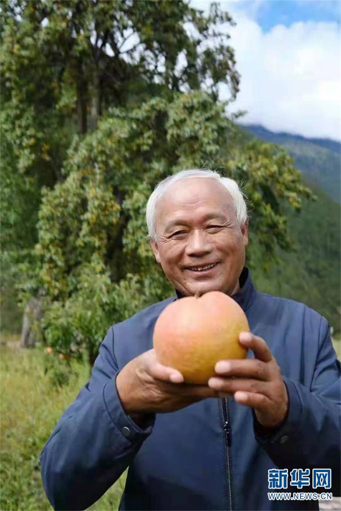 他总结了丽江雪桃的成功经验,分析了滇西北高山耸立、气候垂直分布、植物基因库富集的特点,得出一个结论:“三江并流”地区野生梨资源丰富、基因优良,能选育出精品梨。经过多年研究,2014年,种植实验稳定后,木崇凤把这个带着“高原红”的晚熟梨定名为“木梨”。