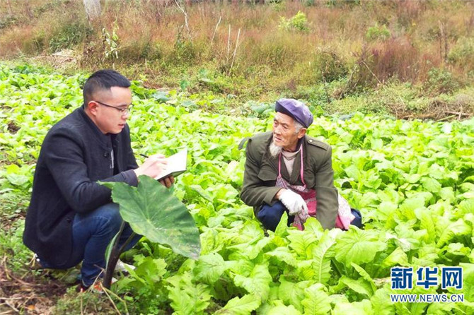 绥江县一名村干部(左)深入田间地头察访群众,收集村组干部不正之风问题线索。(供图)