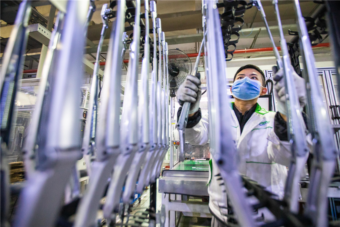 1月3日,在浙江温岭一家汽车零部件公司的生产车间内,工人在生产线上忙碌。