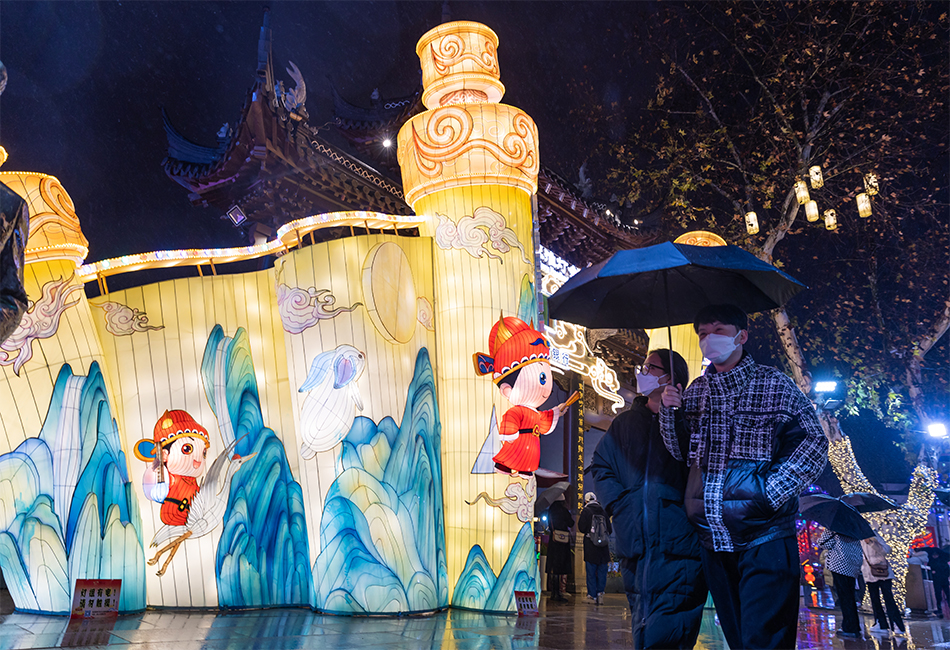 1月14日,游人在夫子庙景区观赏花灯。 新华社发(张梦 摄)