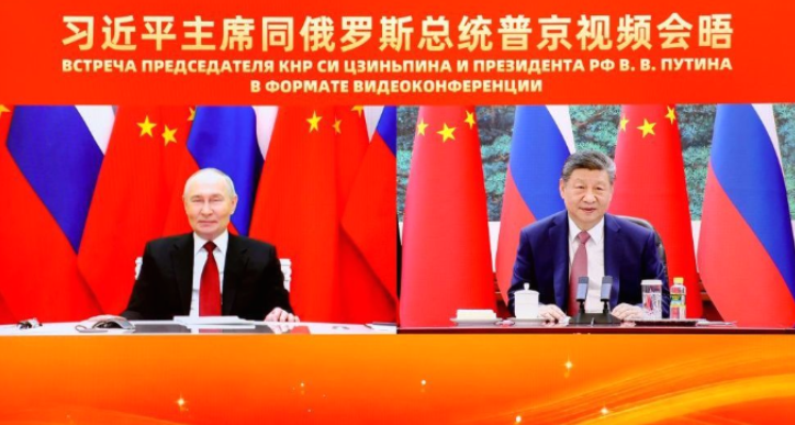 ประธานาธิบดีสี จิ้นผิง พบปะพูดคุยทางวิดีโอคอนเฟอเรนซ์กับประธานาธิบดีปูติน
