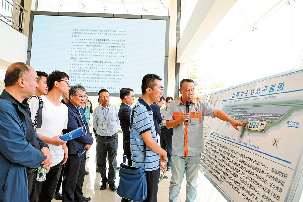 实地考察中铁联集昆明中心站。记者 胡妤雅 王毅 摄(云南日报)