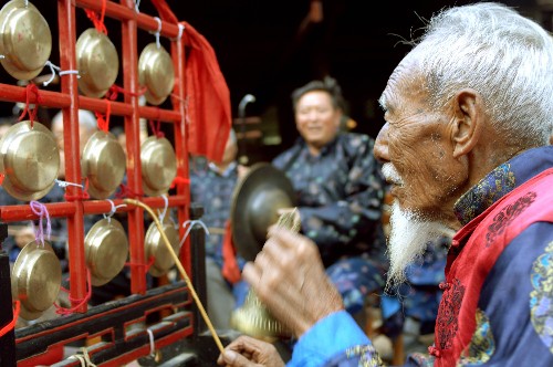 被誉为“音乐化石”的纳西古乐,是多元文化相融汇的艺术结晶,它由《白沙细乐》《洞经音乐》和皇经音乐组成(皇经音乐现已失传)。它是广泛流传于纳西族民间的古典音乐。道教法事音乐,儒教典礼音乐,甚至唐、宋、元朝的词、曲牌音乐,奇迹般地融汇在纳西古乐的旋律中,却形成独特的纳西民间音乐的神韵。