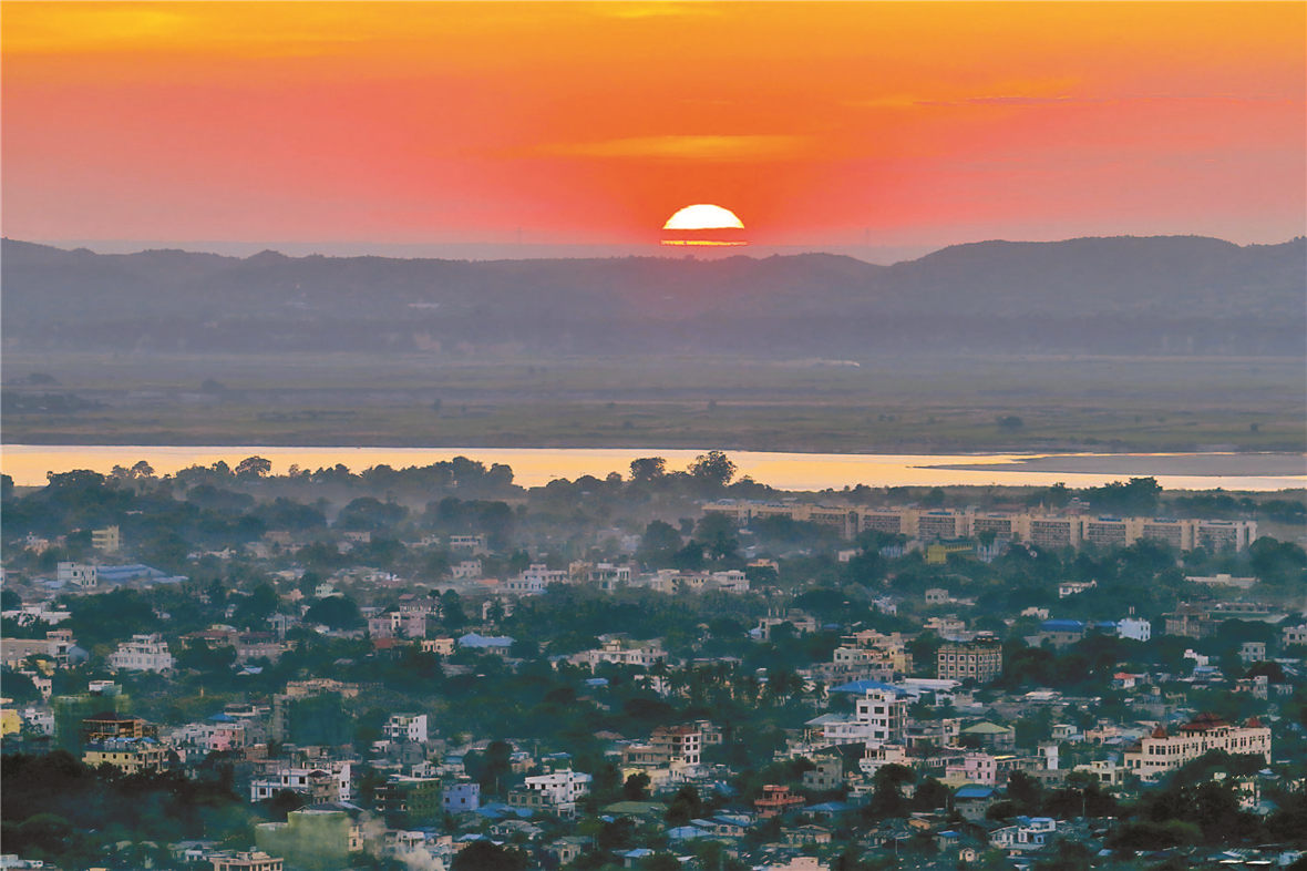 伊洛瓦底江日落。 本报记者 雷桐苏 摄