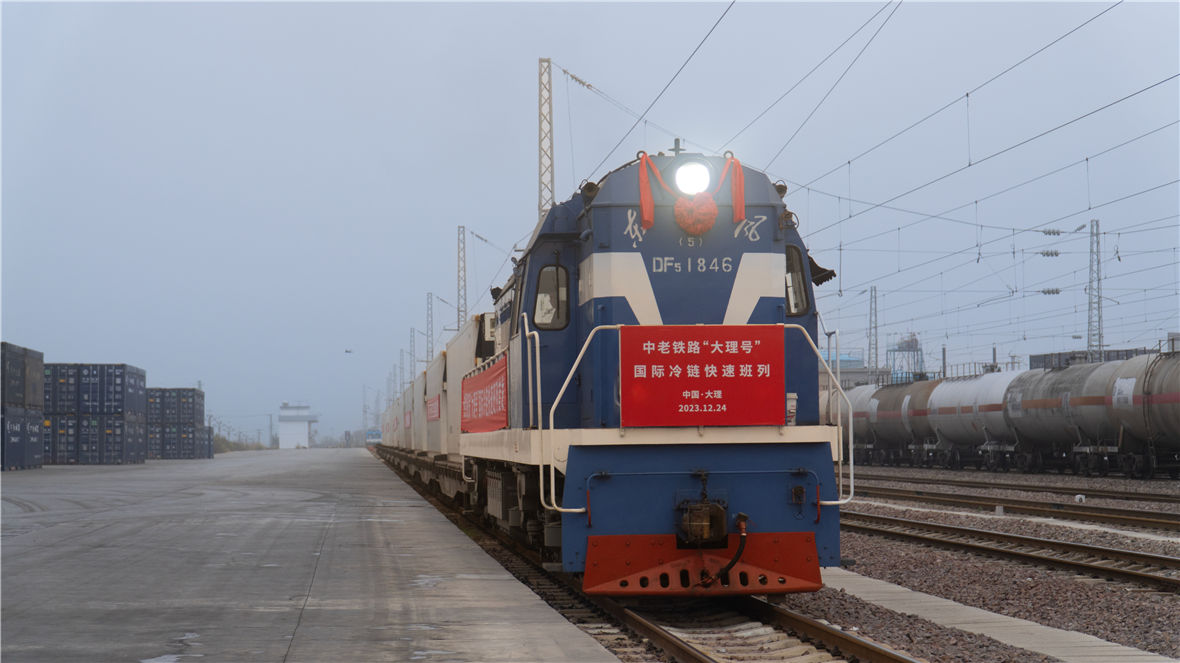 12月24日,中老中越铁路生鲜冷链“大理号”国际专列满载蔬菜水果,从大理白族自治州祥云县首发。该专列的开行,将为大理乃至滇西地区与南亚东南亚国家农牧业产品、生鲜产品等双向贸易打通一条高效快捷的国际冷链物流大通道。