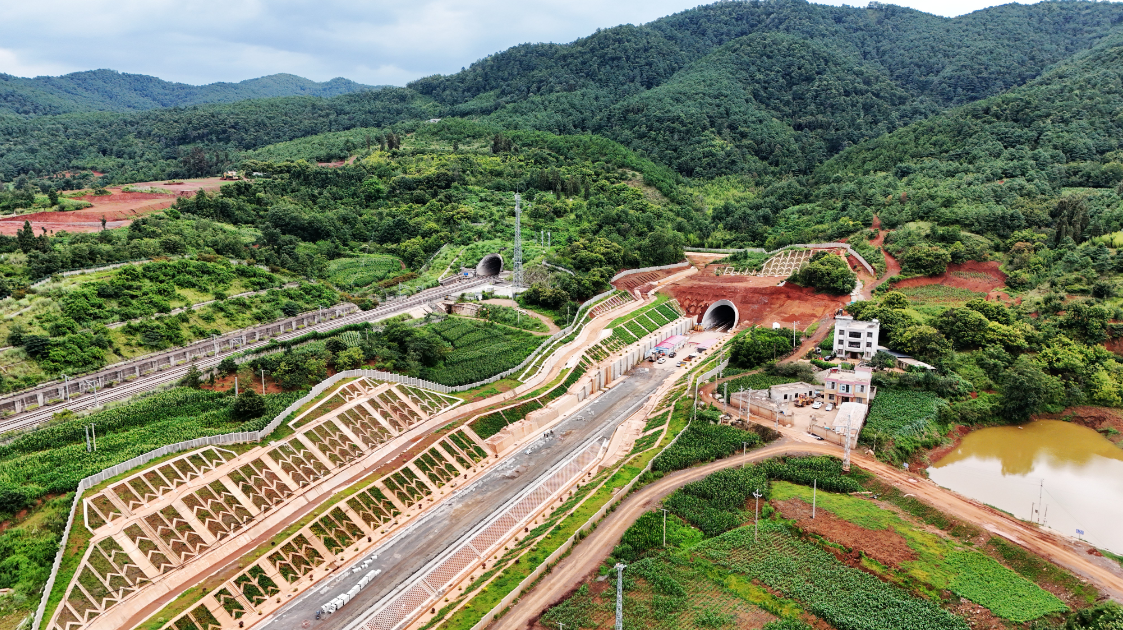 Located in central Yunnan’s Songming county, the single-hole and double-line tunnel has a length of 5,260 meters, and the complex geological conditions have made the tunnel a key project on the railway.
