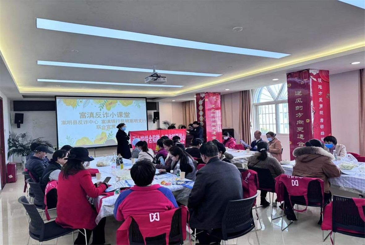 嵩明支行还设立反诈金融宣传员,联合反诈中心邀请中老年客户集中到网点开展专题反诈宣传工作,普及电信诈骗的危害性和防范方法。与此同时,反诈金融宣传员走街串巷,积极推广“守富盾”,提升县域居民反诈能力。