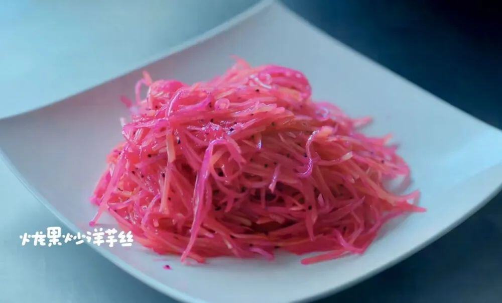 ผัดมันฝรั่งซอยเป็นอาหารที่เห็นได้ทั่วไปในมณฑลยูนนาน แต่ในอำเภอหยวนเจียง มณฑลยูนนาน อาหารเมนูนี้ได้รับดัดแปลงใหม่ โดยจะนำไปผัดกับแก้วมังกร ซึ่งนอกจากจะมีสีสันที่สดใสแล้ว ยังมีรสหวานอมเปรี้ยว เหมาะสมสำหรับทานในฤดูร้อน