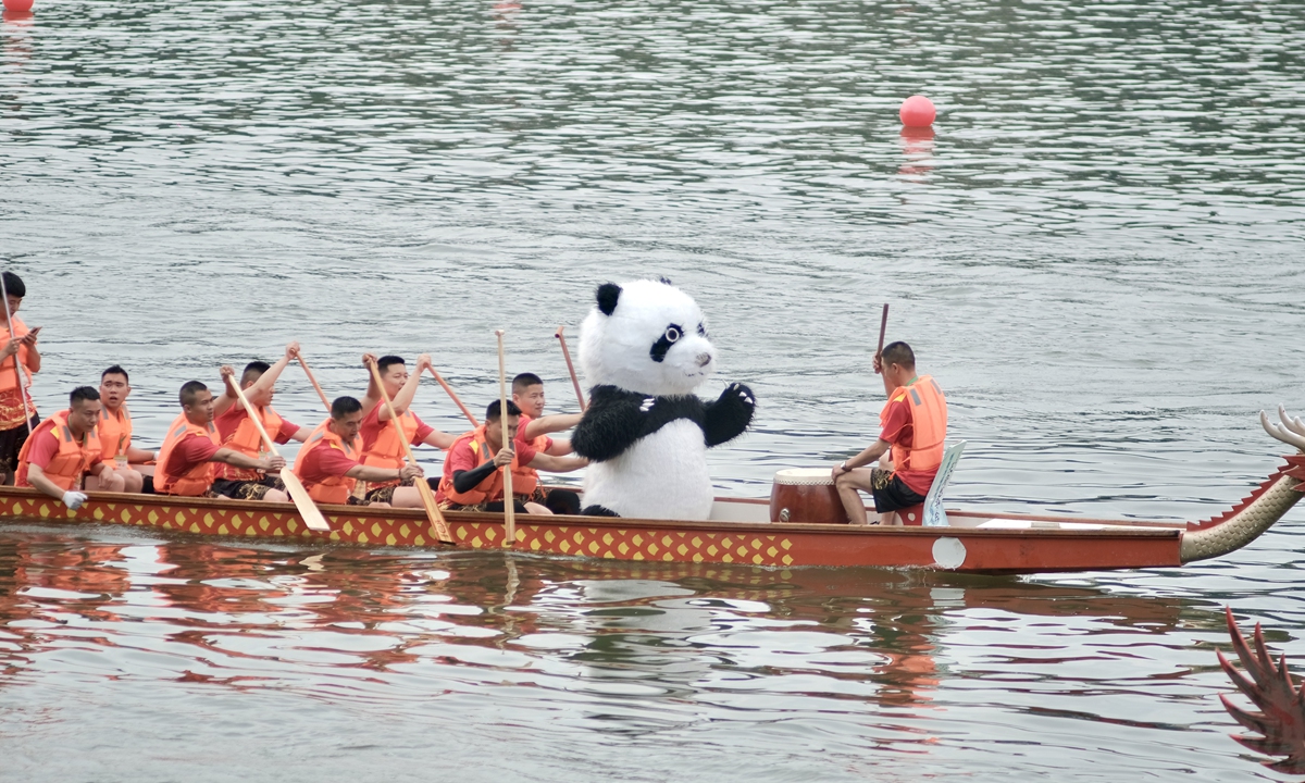 People participate in the Xinjin Dragon Boat Race in Chengdu, Southwest China's Sichuan Province, on June 8, 2024.