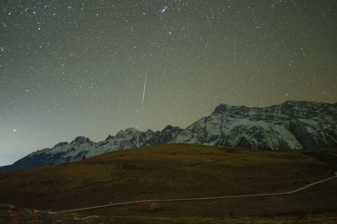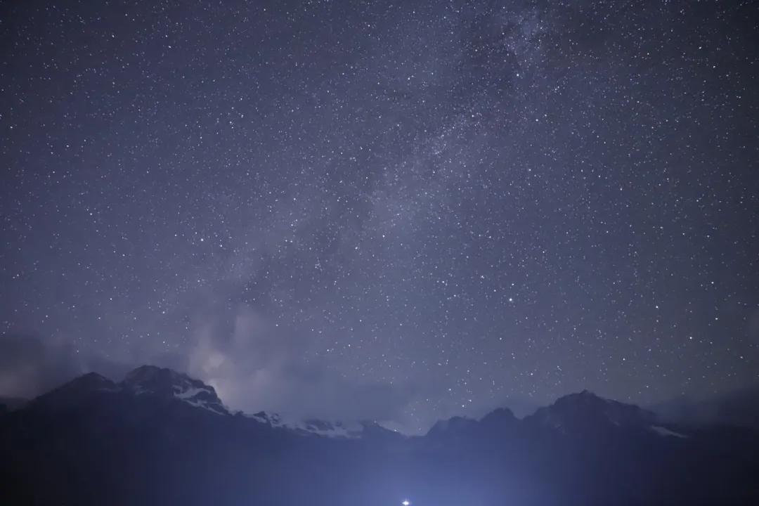 As night falls, Jade Dragon Snow Mountain offers yet another marvel: its dazzling starry sky. Far from the city lights, the stars shine brighter and clearer, each one a tiny beacon against the inky backdrop.