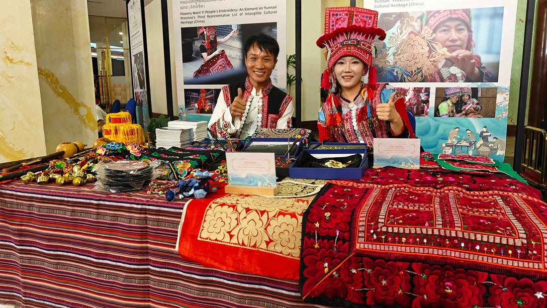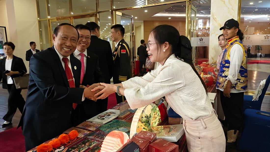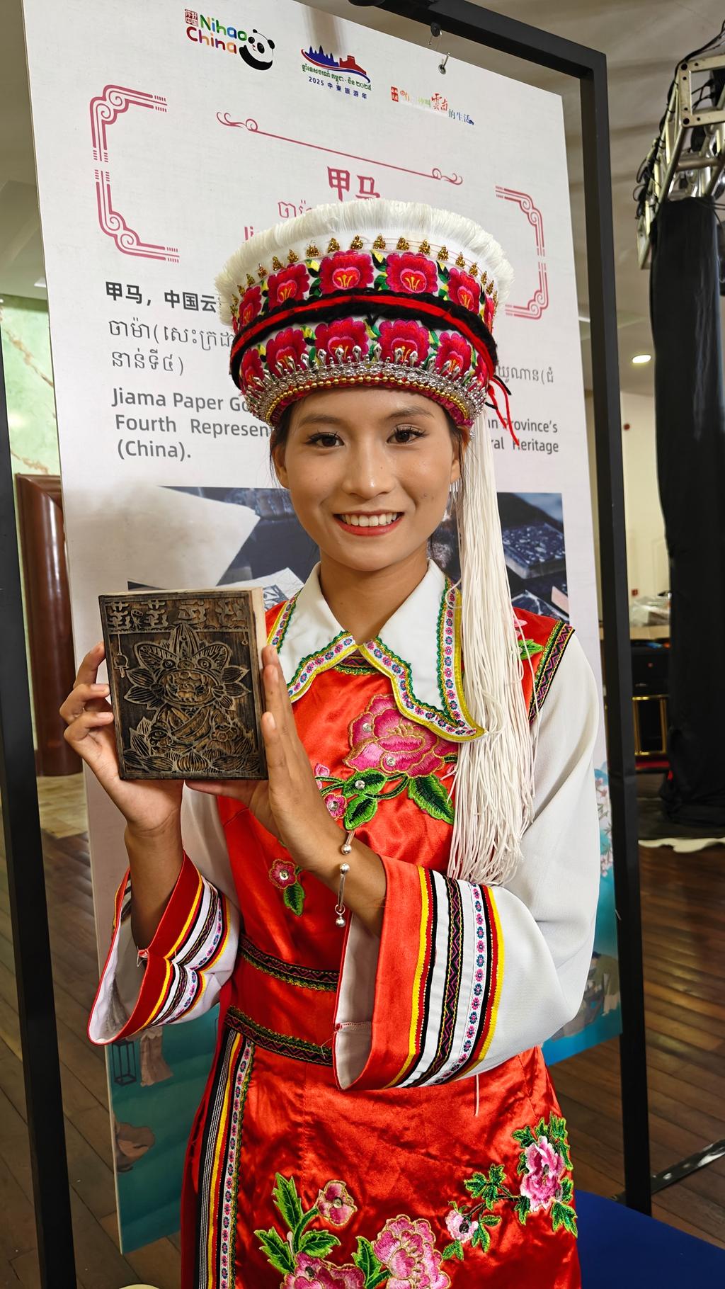 Yunnan specialty teas such as Pu'er tribute tea, Dianhong tea, and De'ang sour tea were highly appreciated. Yunnan cultural inheritors talked with their Cambodia peers and the reception attendees, who were impressed by the Bai woodcarving, Dai traditional papermaking, and Naxi Dongba paintings.