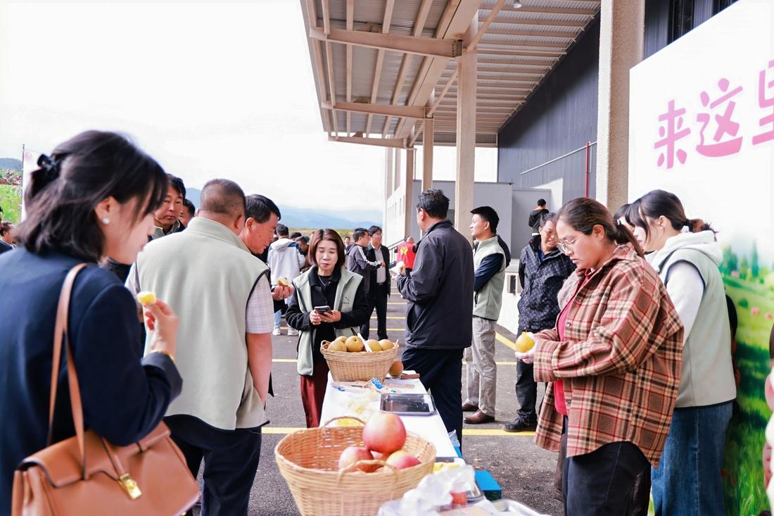 Farmers show apples during the event in Ninglang Yi autonomous county.