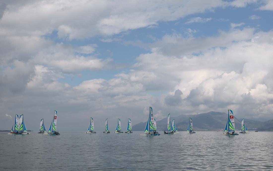 A sailing race is held during the 2025 China Outdoor Sports Industry Conference.