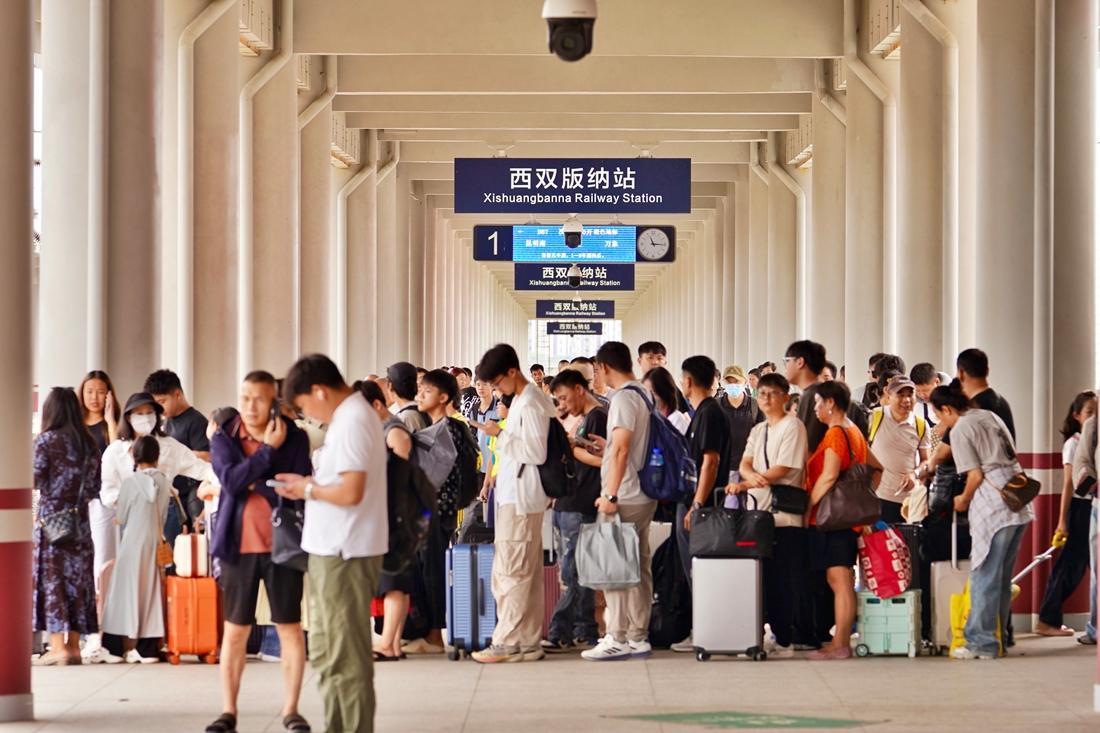 Tourists wait for their train at the Xishuangbanna railway station in Jinghong city, south Yunnan’s Xishuangbanna prefecture.