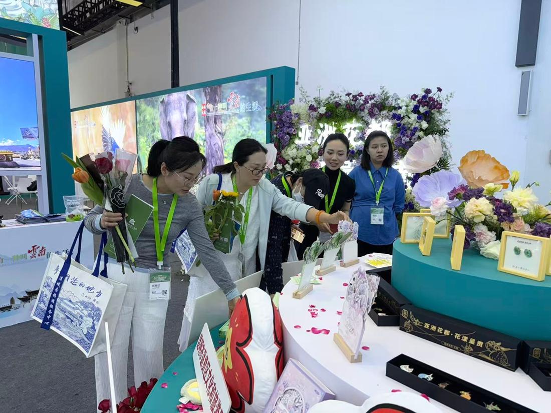 The Yunnan exhibition area covered 600 square meters, with the theme of "sojourning in Yunnan for a many-splendored life." The area showcased Yunnan’s cultural tourist brands, provincial tourist destinations, cultural tourist businesses, intangible cultural heritages, and others.