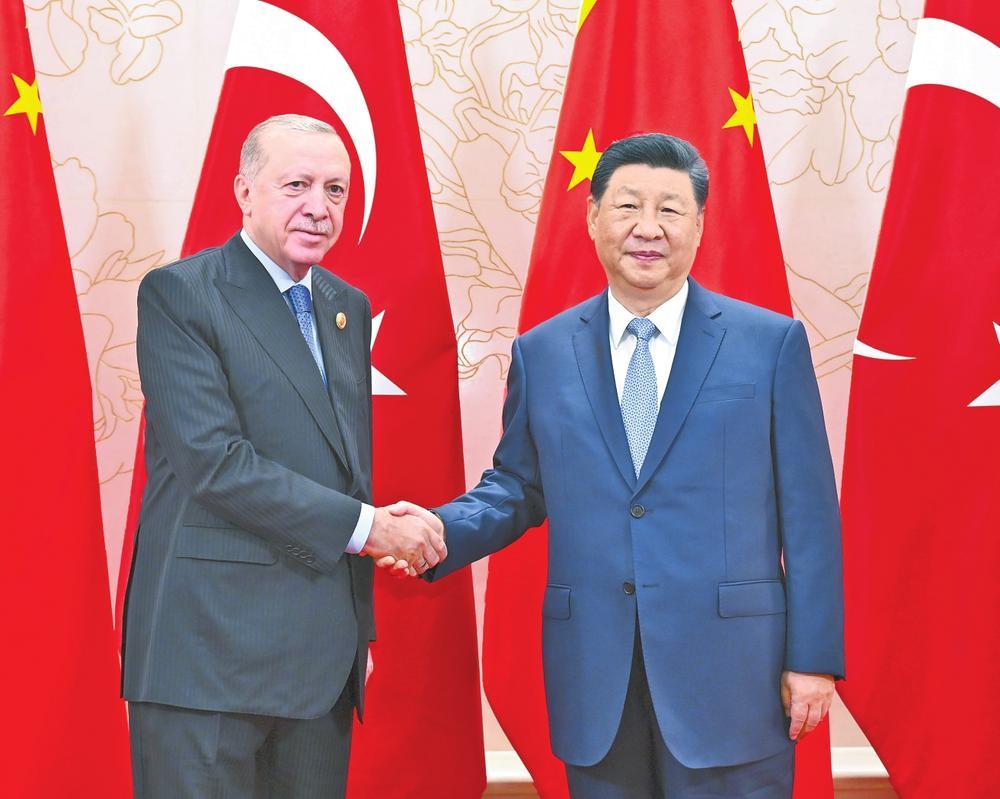 习近平指出,中国和土耳其同为新兴大国、全球南方重要成员,都是有着独立自主精神的国家。中土关系保持高水平发展,符合两国根本利益,也符合全球南方共同利益。两国要把握和平、发展、合作、共赢的时代潮流,在实现国家富强的道路上相互成就,推动中土战略合作关系达到新高度,携手推动构建更加公正合理的全球治理体系。