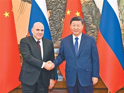 习近平指出,今年以来,中俄关系锚定更高水平、更高质量发展目标,在风高浪急的外部环境中笃定前行。维护好、巩固好、发展好中俄关系,是双方的战略抉择。我同普京总统在莫斯科和北京两次会晤,就中俄关系中的战略性、全局性问题深入交流,作出新的谋划和部署。双方要保持密切协调,落实好我同普京总统达成的重要共识,着眼两国和两国人民的根本利益,把中俄合作的蛋糕做好,也为世界和平与发展作出新的更大贡献。