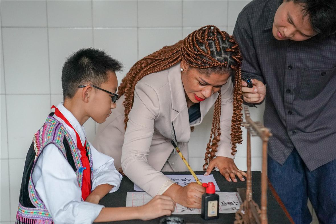 从云端的连接到现实的奔赴,这些年,两国情谊不断延续和生长。2024年5月,奥比昂总统通过视频与师生亲切会面;2025年4月,学校与赤道几内亚儿童救助委员会多语种学校小学部正式建立友好关系。今年9月开学之际,赤道几内亚记者米拉格罗萨·米查不远万里,来到这座山间校园看望开学的孩子们。
