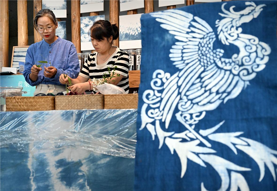 作为栾川县非物质文化遗产代表性项目粗布印染技艺传承人,王丹凤不仅在用料中创新,还在实践中积极探索非遗与教育、旅游等多领域的融合。通过非遗课堂的开设,让更多孩子体验印染技艺的独特魅力;将手工印染的产品投入民宿的装饰与布草使用中,让游客“沉浸式”感受非遗文化。