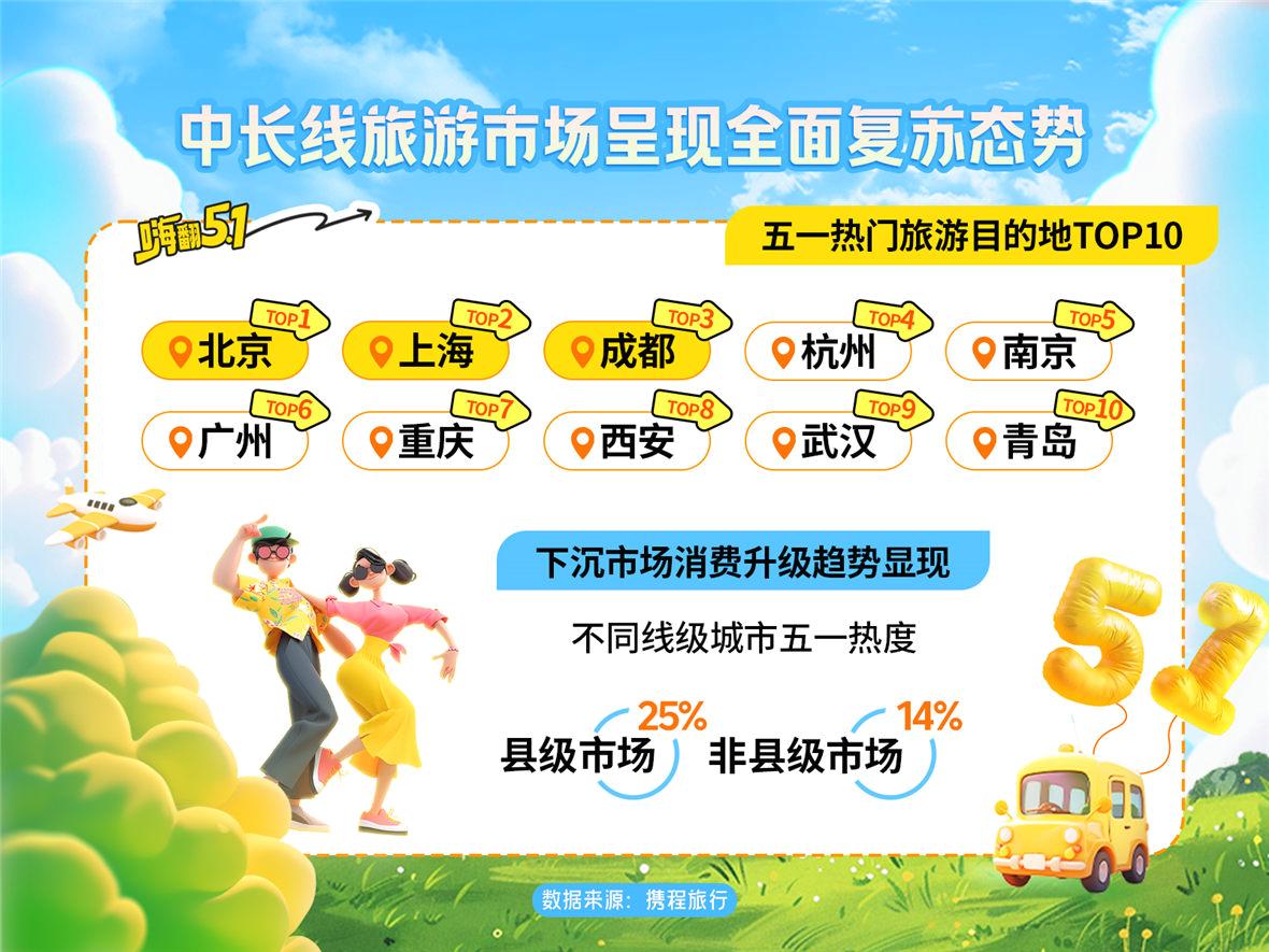 “五一”假期临近,旅游市场热度持续攀升。4月18日,携程发布《五一旅游出行预测报告》显示,今年假日旅游消费呈现“长线爆发、县域逆袭、跨境双向升温”三大特征。