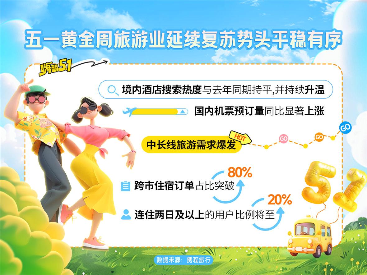 清明假期过去不久,国内旅游市场迅速切换至“五一”预备模式。交通运输部预测,“五一”期间日均跨区域人员流动量将超2.7亿人次。携程数据显示,近一周境内酒店搜索热度环比上涨100%,机票搜索热度上升80%。