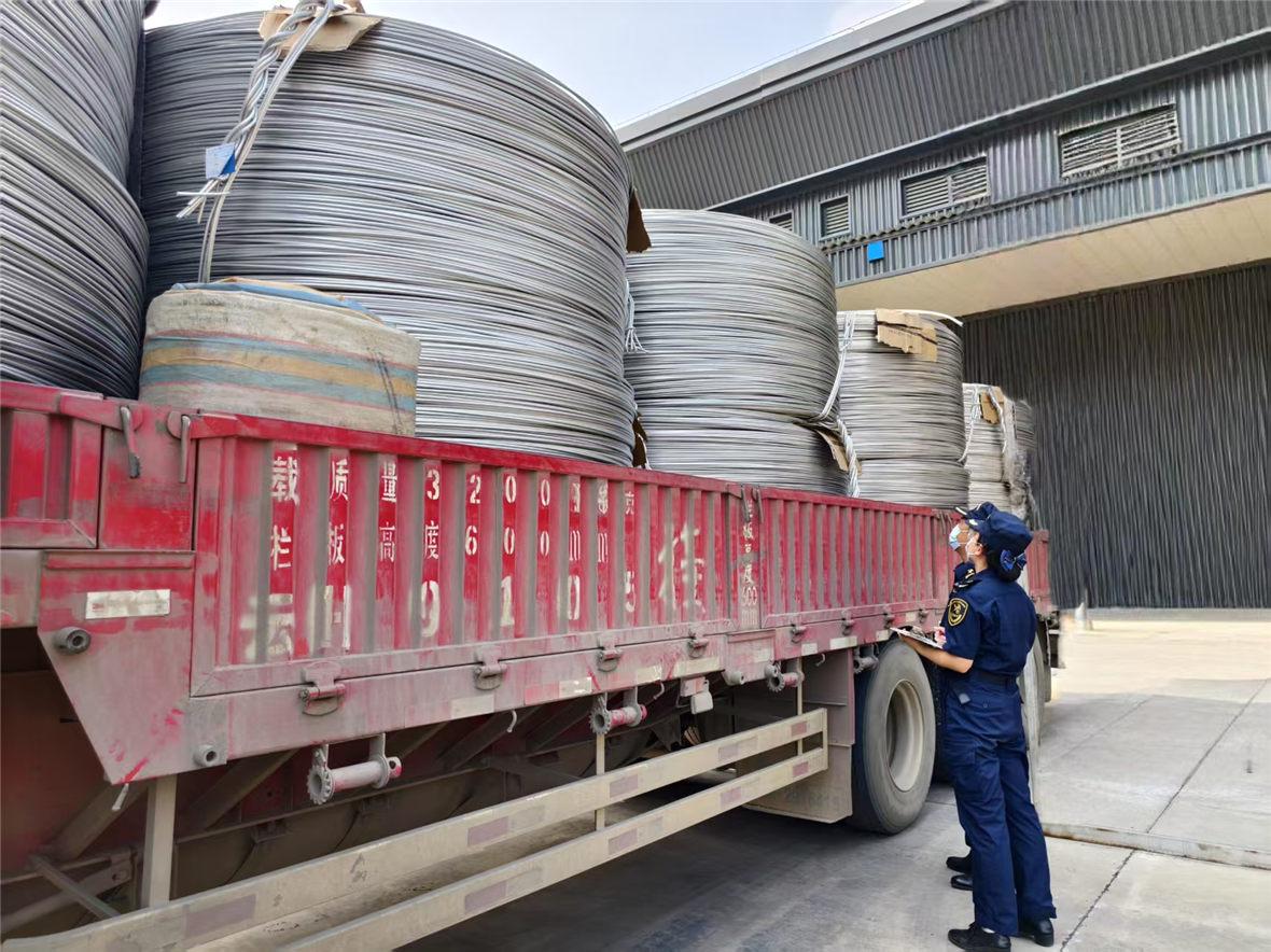 海关关员在天保口岸对出口越南的电工圆铝杆开展监管。昆明海关供图