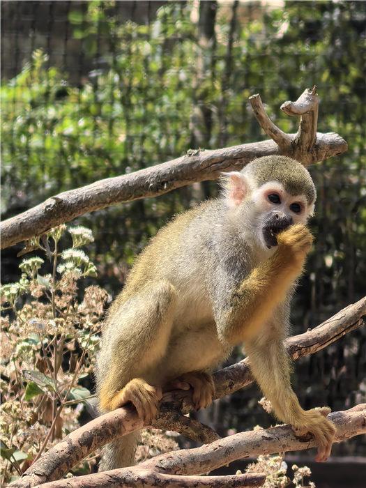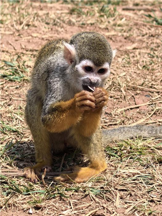 松鼠猴是源自南美洲的小型猴类,喜食各种水果及小型昆虫。它们体重有750克至1100克,但大脑占体重的比例高达1:17,而人类一般只有1:35。