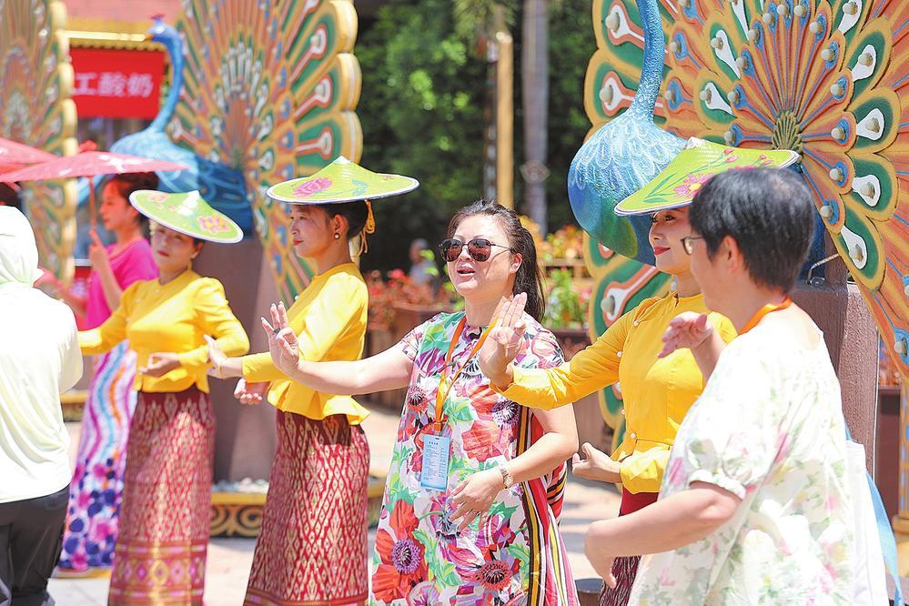 走在充满傣族和东南亚风情的芒市傣族古镇,新西兰中国工商理事会联席主席、亚太投资贸易集团董事长齐慧芳的目光被织锦、土陶、剪纸等非遗展示牢牢吸引,美食区的云南咖啡、坚果等也让她回味不已。
