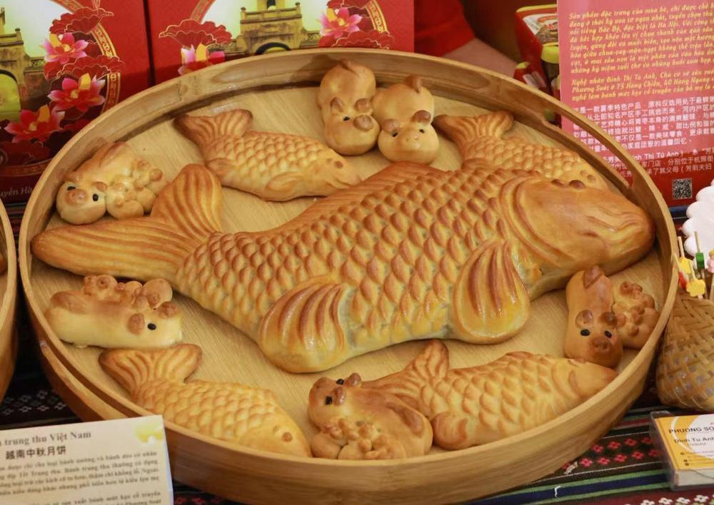 丁氏秀英的月饼摊飘着黄油香,她做的月饼模样特别。鱼形压着水波纹,寓意年年有余;龙形刻着祥云纹,象征吉祥安康。“我是家族第三代做月饼的,百年前祖辈就用这些造型祈愿团圆。”她拿起一块龙形月饼,笑着说想让两国食客都尝到这份中秋的甜。