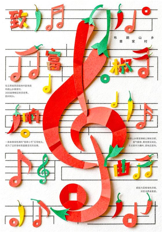创意说明:在云南省西双版纳州勐海县布朗山乡章家村,1600亩辣椒迎来采收季。田间地头,一串串青绿饱满的“翡翠小号”压弯枝头,成为了边民增收致富最坚实的支撑。