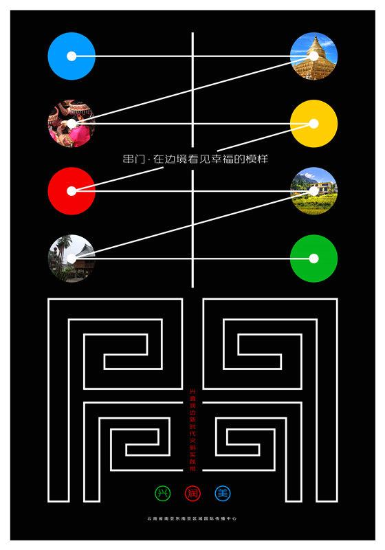 创意说明:设计采用汉字“串”字图形化处理,中间运用对话框的形式,表达云南边境国与国之间的零距离对话。