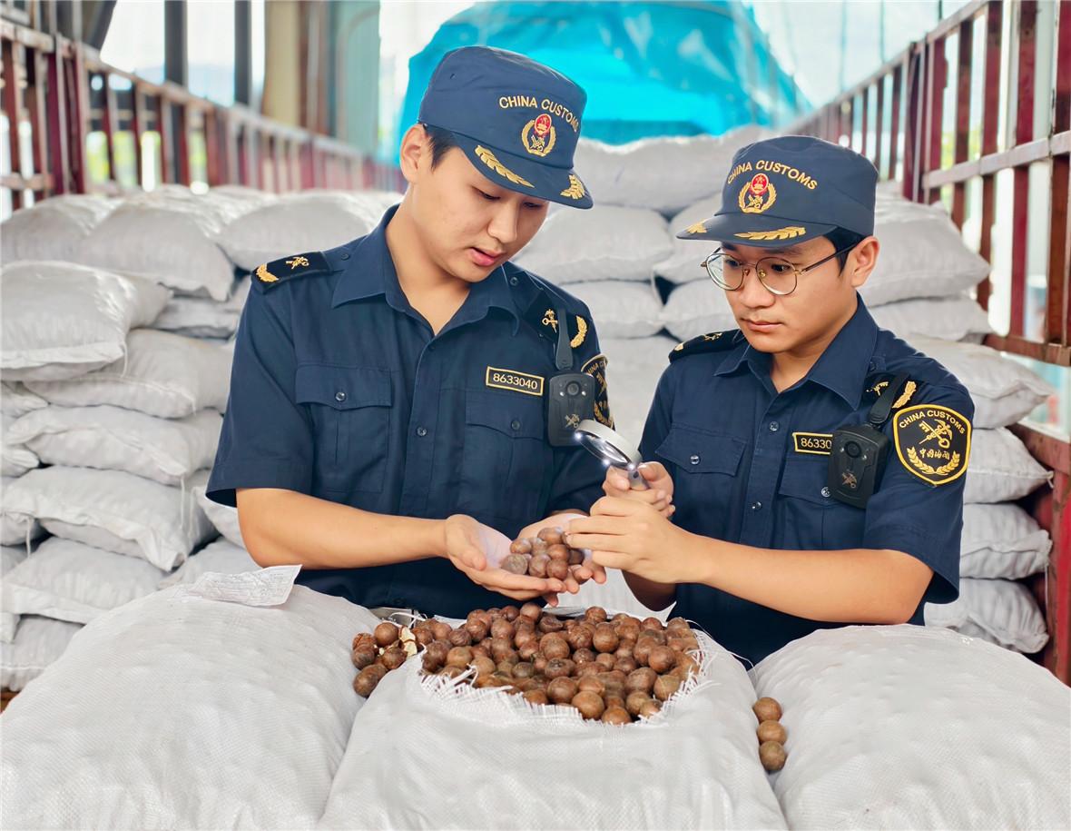 作为全球广受欢迎的坚果品类,夏威夷果以香脆的口感与丰富的营养深受消费者青睐。畹町海关主动靠前服务,通过“关长送政策上门”、服务热线等形式,为进口企业详细解读缅甸夏威夷果境外生产企业注册、进出口商备案等政策,帮助企业全面把握监管和申报要求,确保贸易顺畅。