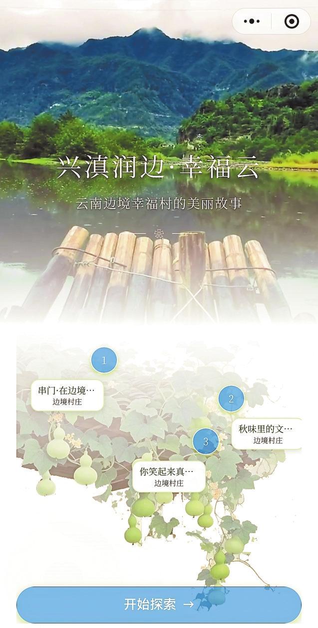 11月4日,由云南省委宣传部指导、云南省南亚东南亚区域国际传播中心设计实施的微信小程序“兴滇润边幸福云”,在云南省推进“兴滇润边新时代文明实践带”建设主题活动上正式上线。