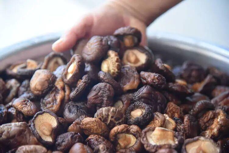 Dried mushrooms are cleaned for use.