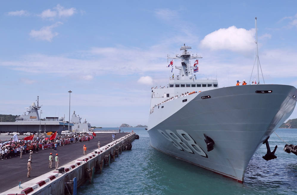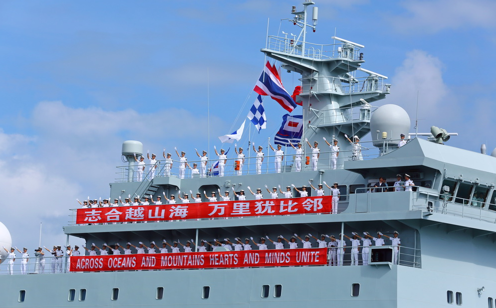 เวลา 7.00 น. ตามเวลาท้องถิ่น เรือรบ “ฉีจีกวง” และเรือรบ “อี๋เหมิงซาน” ของจีนได้เดินทางถึงน่านน้ำที่กำหนด และพบกับ “เรือหลวงช้าง” ของกองทัพเรือไทย จากนั้นเรือรบทั้งสามลำได้รวมตัวเป็นขบวนกองเรือและแล่นเข้าสู่ท่าเรือสัตหีบร่วมกัน เวลาประมาณ 10.00 น. เรือรบ “ฉีจีกวง” และเรือรบ “อี๋เหมิงซาน” ที่ประดับธงชาติจีนและธงชาติไทยได้จอดเทียบท่าอย่างช้า ๆ โดยมีนายจาง เจี้ยนเว่ยเอกอัครราชทูตจีนประจำประเทศไทย และเจ้าหน้าที่สถานทูต รวมถึงผู้แทนบริษัทจีน ชาวไทยเชื้อสายจีน เยาวชนจีน-ไทย รวมถึงผู้แทนกองทัพเรือไทยกว่า 1,700 คน มาร่วมต้อนรับอย่างอบอุ่น พร้อมจัดพิธีต้อนรับอย่างเป็นทางการ