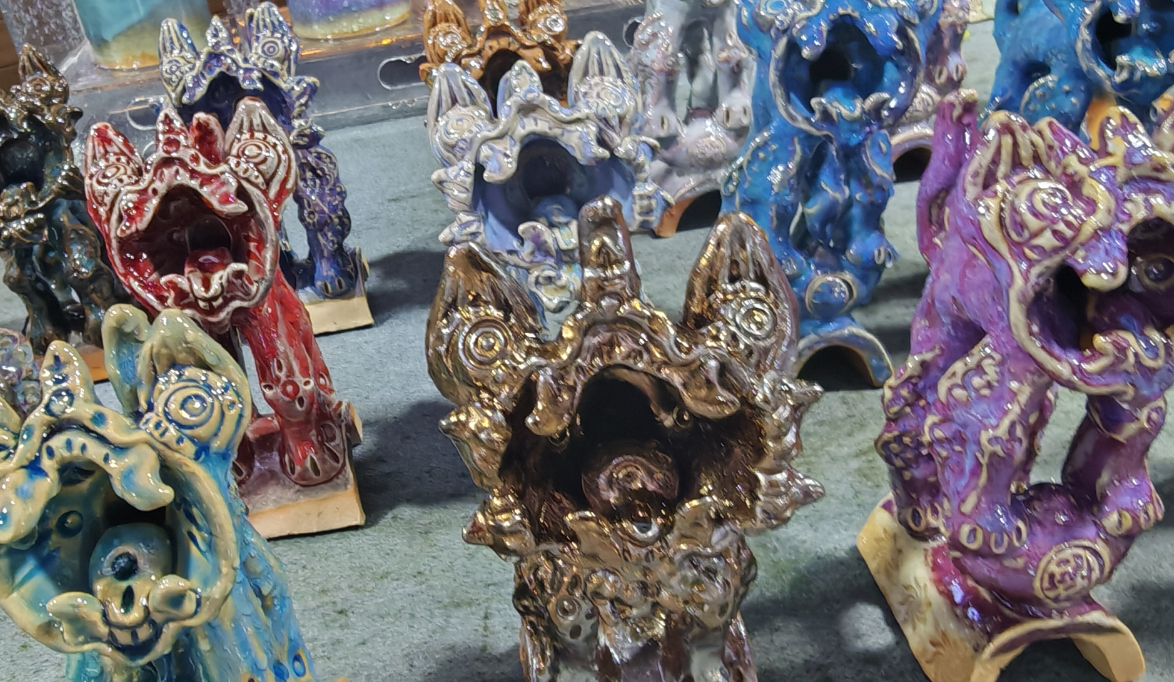 แมวกระเบื้องไม่มีรูปแบบตายตัวหรือมาตรฐานการสร้างที่แน่นอน แมวกระเบื้องบางตัวฟันไม่แหลมคม หากแต่เป็นทรงเหลี่ยมเรียงสวย ดูอ่อนโยนและซื่อ ๆ บางตัวมีเกล็ดปลาปกคลุมทั่วตัว หรือมีเขาอยู่บนหัว บางตัวมีปีกเพิ่มเข้ามาที่หลังโดยช่างฝีมือ และบางตัวก็ยากจะบอกว่าเหมือนสิ่งใด กลับยิ่งกระตุ้นจินตนาการของผู้ชม หลังจากได้ชมแมวกระเบื้องหลายตัวแล้ว คุณจะพบว่าแต่ละตัวล้วนมีจิตวิญญาณเฉพาะตน เปี่ยมด้วยความงามเชิงนามธรรม จนกล่าวได้ว่า “แมวพันตัว พันใบหน้า”