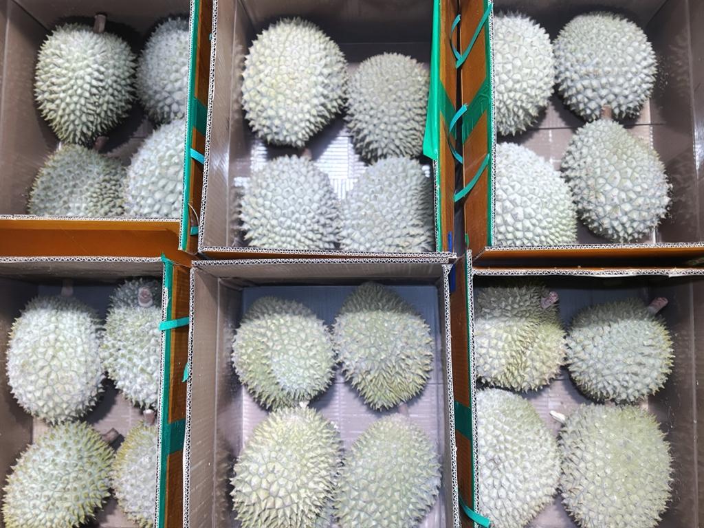 Vietnamese durian is examined at the Tianbao international cargo yard.