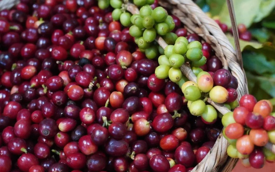 Freshly picked coffee in southwest Yunnan’s Pu'er city