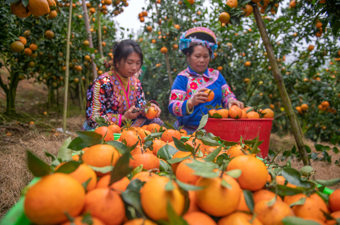 In Longcun village of Maguan county, southeast Yunnan’s Wenshan Zhuang and Miao autonomous prefecture, farmers are busy harvesting oranges.